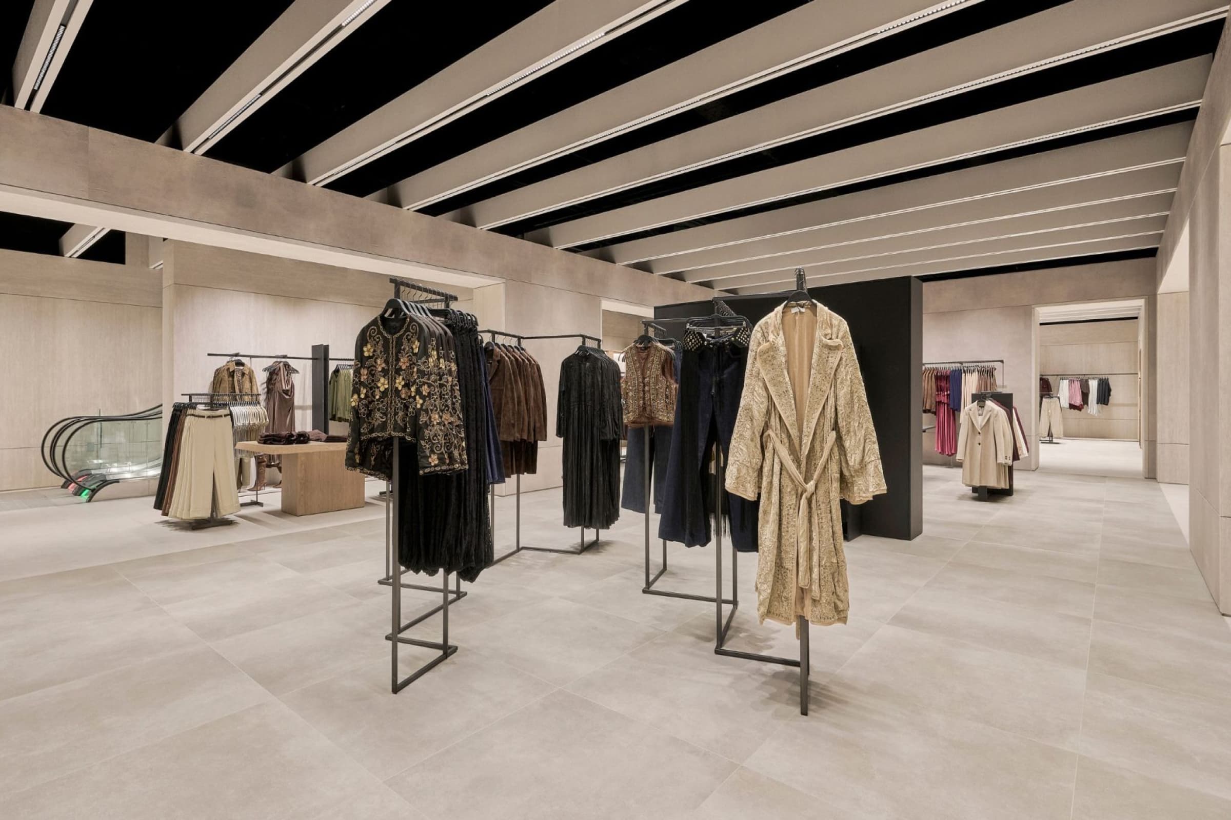 Over 3.000 m2 across two floors, the store blends minimalist and industrial design with advanced retail technology, setting a new standard for fashion destinations in the country.
